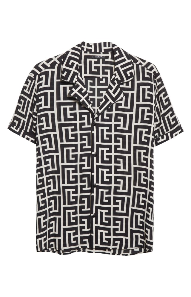 Lambskin leather brings standout looks and comfort to this short-sleeve camp shirt framed with a point collar and snap placket.